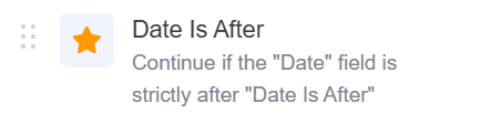 This operator checks if the given date is later than the specified reference date. It returns true if the value in the Date field is after the reference date, and false otherwise.