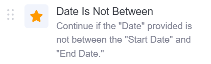 This operator checks if the given date falls outside a specified range defined by two reference dates. It returns true if the specified date falls outside the range; otherwise, it returns false, including when the date is the same as the Start Date or End Date.