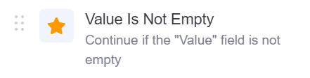 - Value: The field to check whether it is not empty. If this field is not empty, it returns true and proceeds.