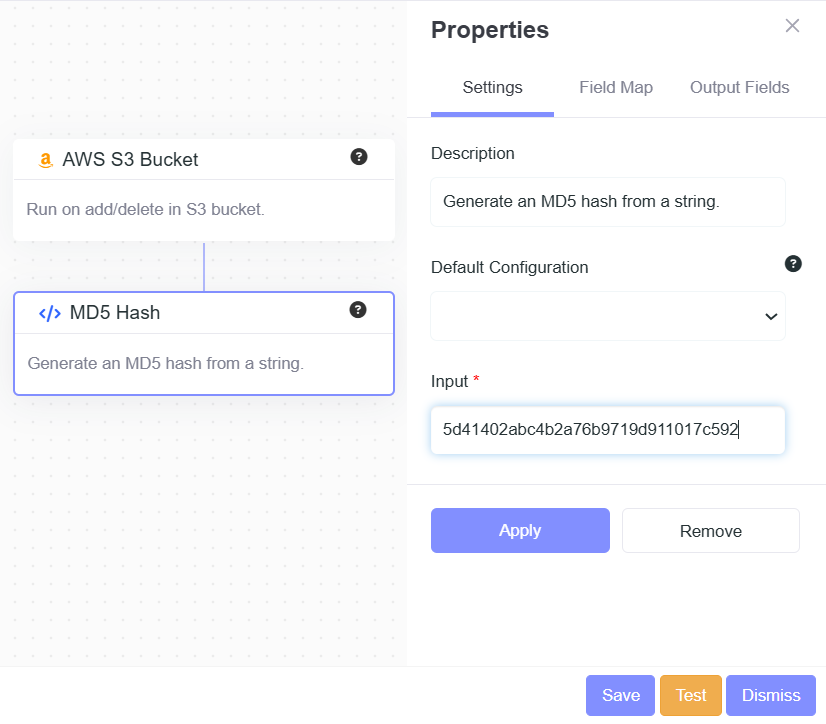 - Description: Generate an MD5 hash from a string.