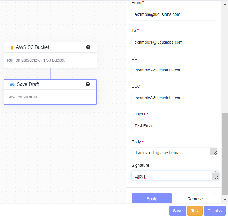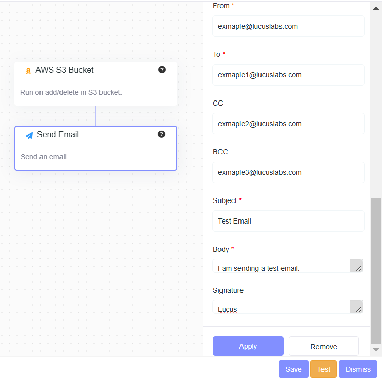 - From Address : example@lucuslabs.com